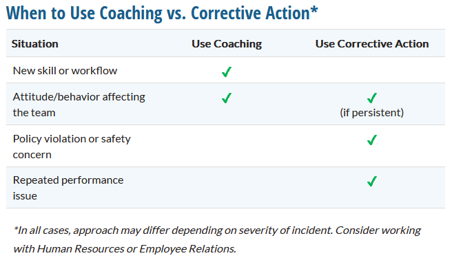 When to Use Coaching vs. Corrective Action*